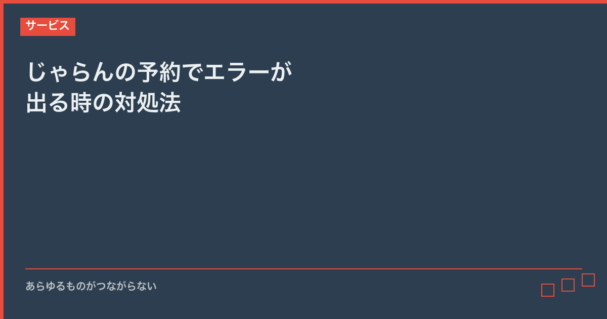 じゃらんで接続やアクセスのトラブルが発生していませんか。この記事では、じゃらんの予約でエラーが出る時の対処法の原因と対処法をご説明いたします。