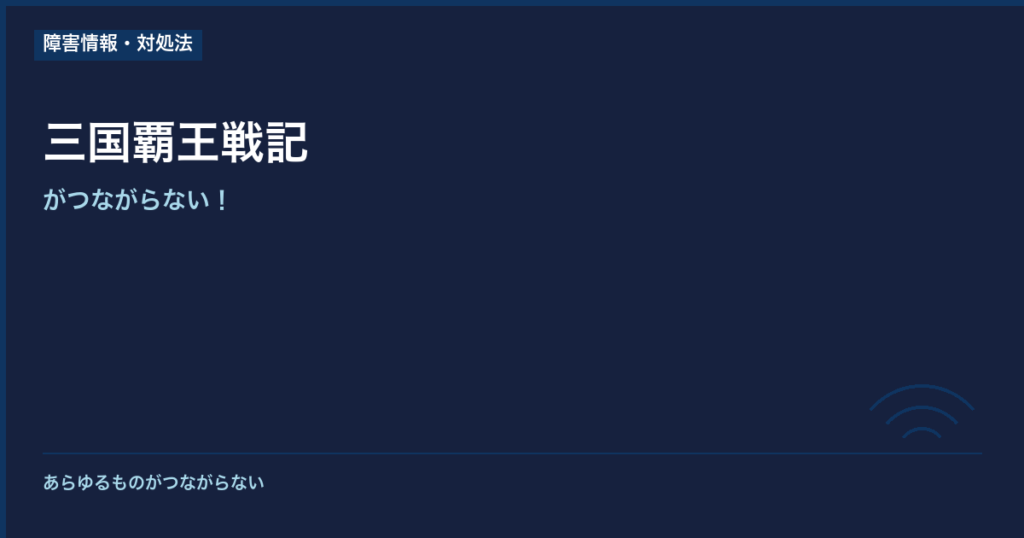 「三国覇王戦記~乱世の系譜~」(通称:三国覇王戦記)で通信エラーが出てつながらない、あるいはアプリが起動しないといった症状が出ていませんか。 この記事では、三国覇王戦記のサーバー障害情報の確認方法と、端末側でできる具体的な対処法をまとめて... -