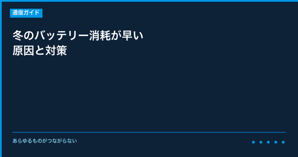 冬のバッテリー消耗が早い原因と対策について、事前に知っておくべき情報と具体的な対策をご説明いたします。 特定の時期に発生しやすいトラブルは、事前の対策で影響を最小限に抑えることができます。 【なぜこの時期にトラブルが増えるのか】 インターネ... -