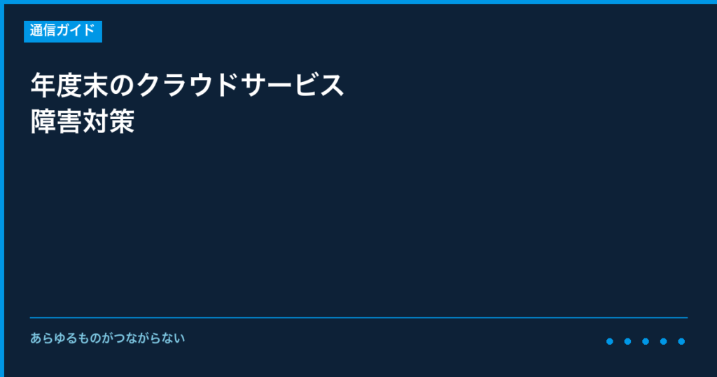 年度末のクラウドサービス障害対策について、事前に知っておくべき情報と具体的な対策をご説明いたします。 特定の時期に発生しやすいトラブルは、事前の対策で影響を最小限に抑えることができます。 【なぜこの時期にトラブルが増えるのか】 インターネッ... -