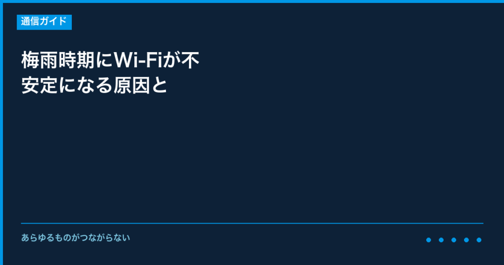 梅雨時期にWi-Fiが不安定になる原因と対策について、事前に知っておくべき情報と具体的な対策をご説明いたします。 特定の時期に発生しやすいトラブルは、事前の対策で影響を最小限に抑えることができます。 【なぜこの時期にトラブルが増えるのか】 イン... -
