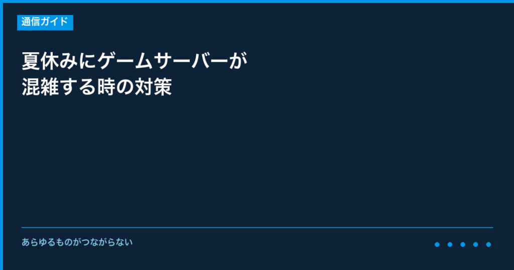 夏休みにゲームサーバーが混雑する時の対策について、事前に知っておくべき情報と具体的な対策をご説明いたします。 特定の時期に発生しやすいトラブルは、事前の対策で影響を最小限に抑えることができます。 【なぜこの時期にトラブルが増えるのか】 イン... -