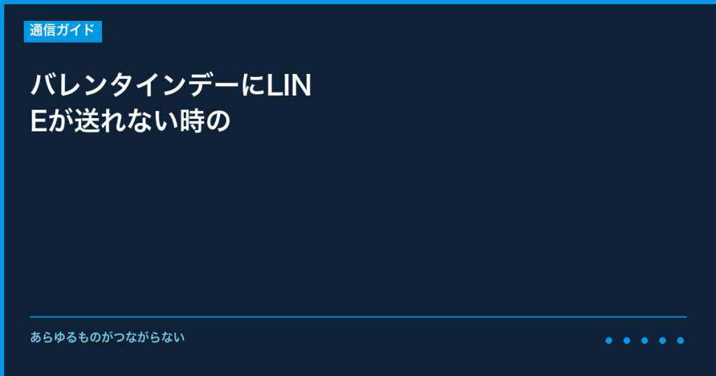 バレンタインデーにLINEが送れない時の対処法について、事前に知っておくべき情報と具体的な対策をご説明いたします。 特定の時期に発生しやすいトラブルは、事前の対策で影響を最小限に抑えることができます。 【なぜこの時期にトラブルが増えるのか】 イ... -