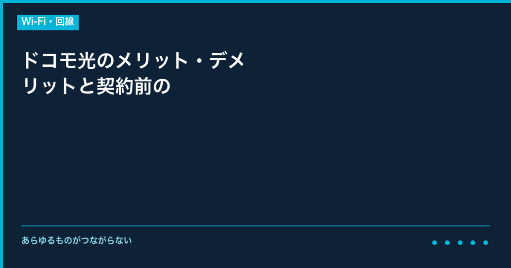 インターネット回線の選び方は、お住まいの環境や利用目的によって大きく異なります。ドコモ光のメリット・デメリットと契約前のについて詳しくご説明いたします。 光回線は「実測速度」と「月額料金」のバランスが重要です。公式サイトの最大速度はあくま... -