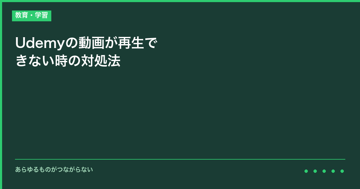 Udemyで接続や動作のトラブルが発生していませんか。学習中のトラブルは集中力を途切れさせるため、できるだけ早く解決したいところです。Udemyの動画が再生できない時の対処法について、対処法をご説明いたします。